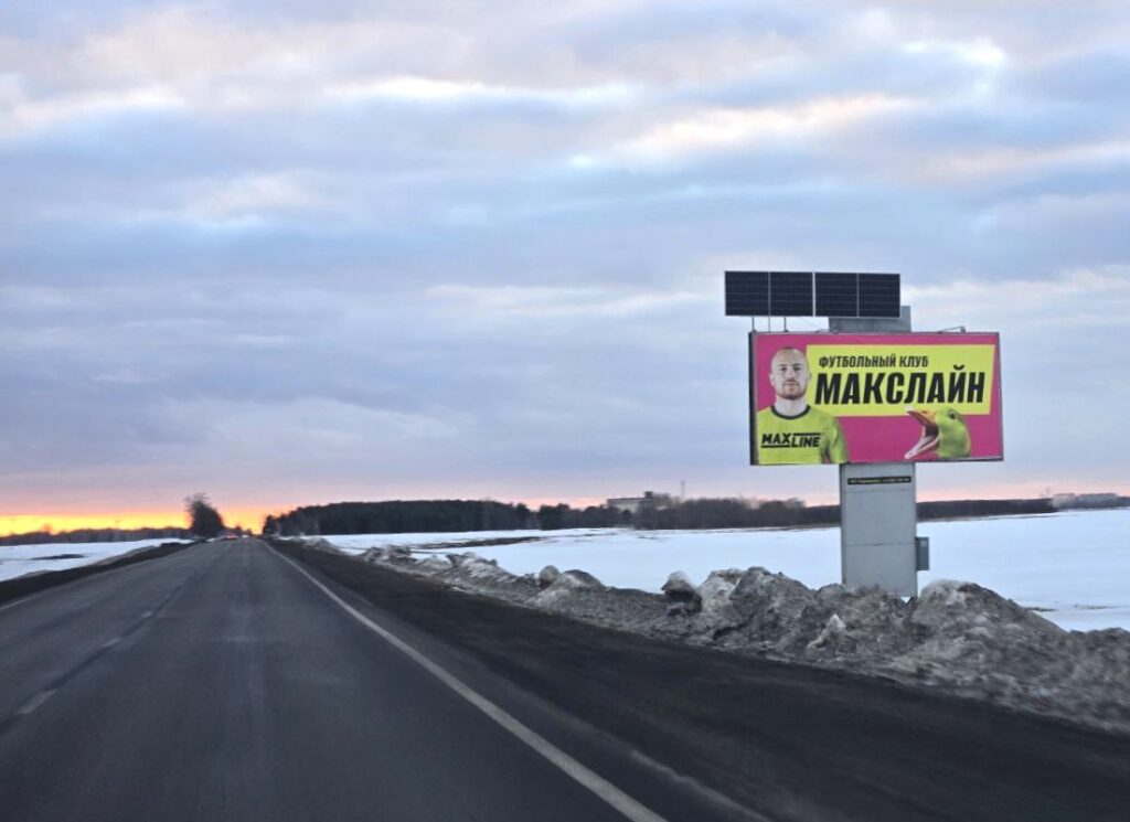 Двусторонний билборд расположен на въезде в Республику Беларусь со стороны Российской Федерации.