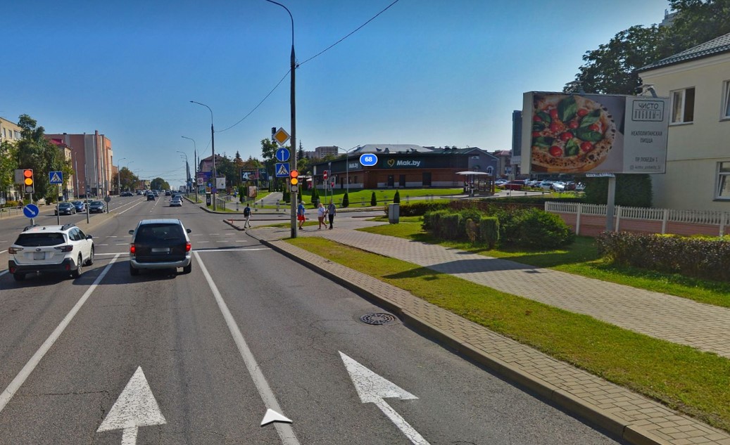 Билборд установлен на пр-те Космонавтов. По направлению от ТЦ Didas Persia (200 м) при движении транспорта из Минска в центр. Отлично просматривается при движении по пр-ту Космонавтов.