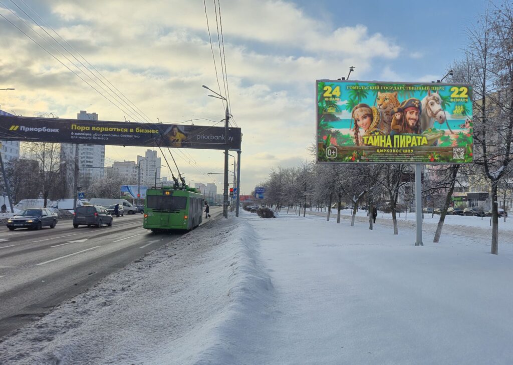 Билборд установлен в крупном жилом микрорайоне напротив ТД «Речицкий» и рынка «Давыдовский». Сторона А работает в направлении к гипермаркету «ГИППО», «ОМА».
