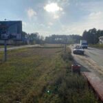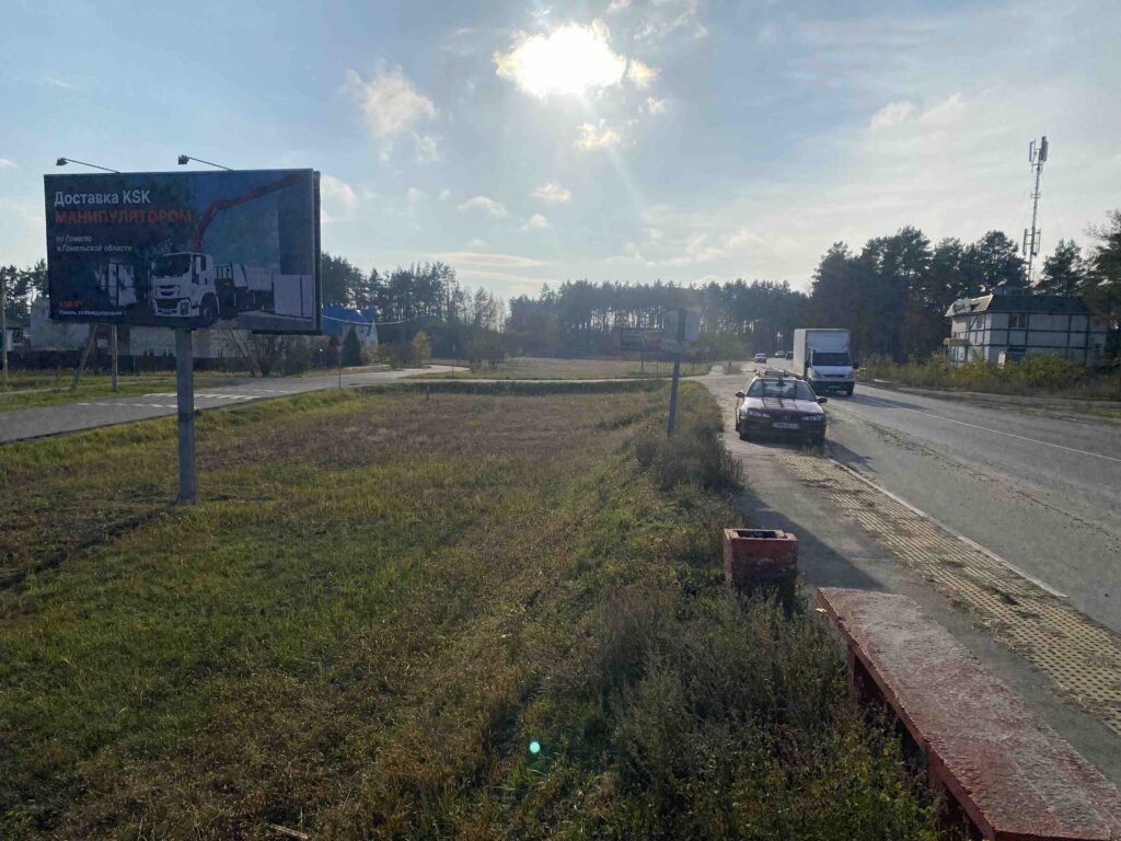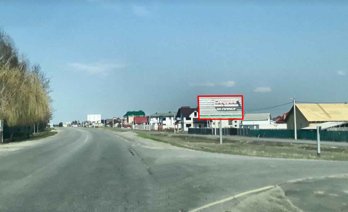Двусторонний билборд установлен в районе индивидуальной жилой застройки «Красный Маяк» на пересечении ул. Луначарского и ул. Мелкая вблизи супермаркета «Евроопт»