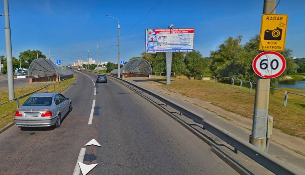 Расположен на оживленном участке дороги, по которой можно попасть в центр города со стороны Российской Федерации. По данному участку дороги движется транспорт из коттеджного поселка «Романовичи» в центр города.