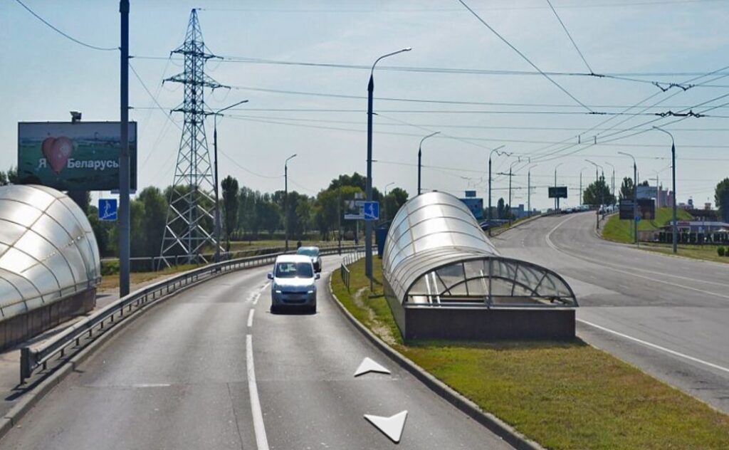 Расположен на оживленном участке дороги, по которой можно попасть в центр города со стороны Российской Федерации. По данному участку дороги движется транспорт из коттеджного поселка «Романовичи» в центр города.