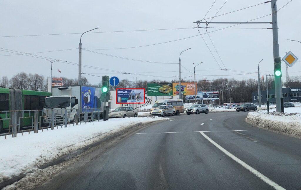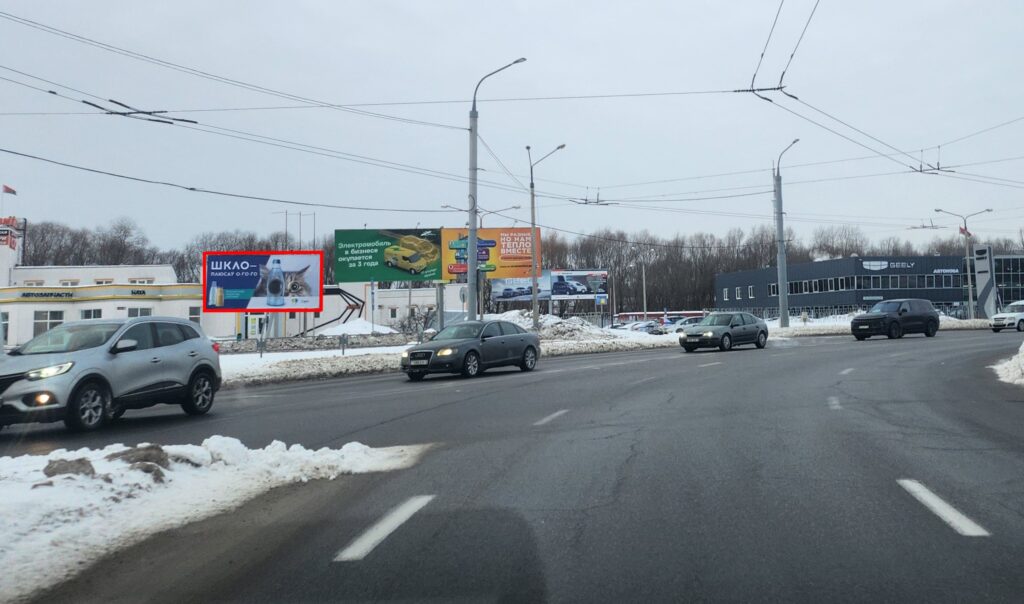 Билборд расположен на транспортной развязке ул. Мазурова / ул. Хатаевича / Восточный обход в непосредственной близости от гипермаркета «Green». Билборд работает при движении по ул. Мазурова в сторону центра города. Это одна из самых загруженных магистралей города: высокий трафик в часы пик гарантирует максимальный охват аудитории, а наличие заторов увеличивает время контакта потенциального клиента с рекламой.