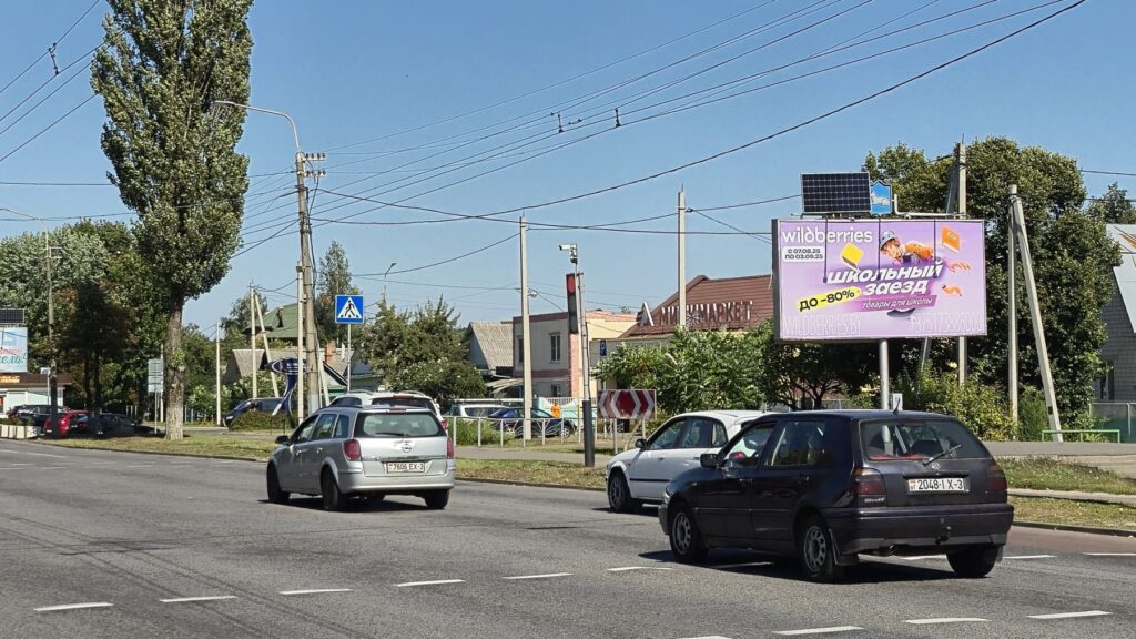 Билборд установлен на перекрестке ул. Ильича и ул. Зайцева, поворот на новый жилой район “Хутор”. Сторона А работает в направлении к центральной части города, Новобелецкому рынку и АЗС, направлена на тех, кто движется от нового «104го мкр-на», завода «Кристалл», Центра радиационной медицины, с мкр-н «Хутор». Расположение борда крайне выгодное: крупный мкр-н города с плотной жилой застройкой, эффективное тр-ное сообщение (легковой, грузовой и все виды общественного транспорта), перспективное окружение (наличие рынка и крупных ТЦ, образовательных учреждений и спортивно-развлекательных объектов).